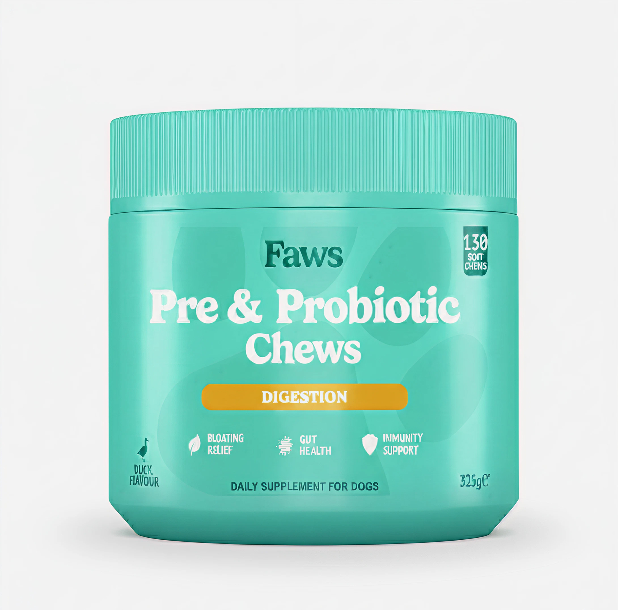 Dosing is based on your dog's weight: dogs under 11kg get 1 chew daily, 11-23kg get 2 chews, 23-35kg get 3 chews, 35-45kg get 4 chews, and dogs over 45kg get 5 chews daily. These guidelines apply to both our Pre & Probiotic and Calming Chews. Each product page includes detailed dosing charts to make it easy.